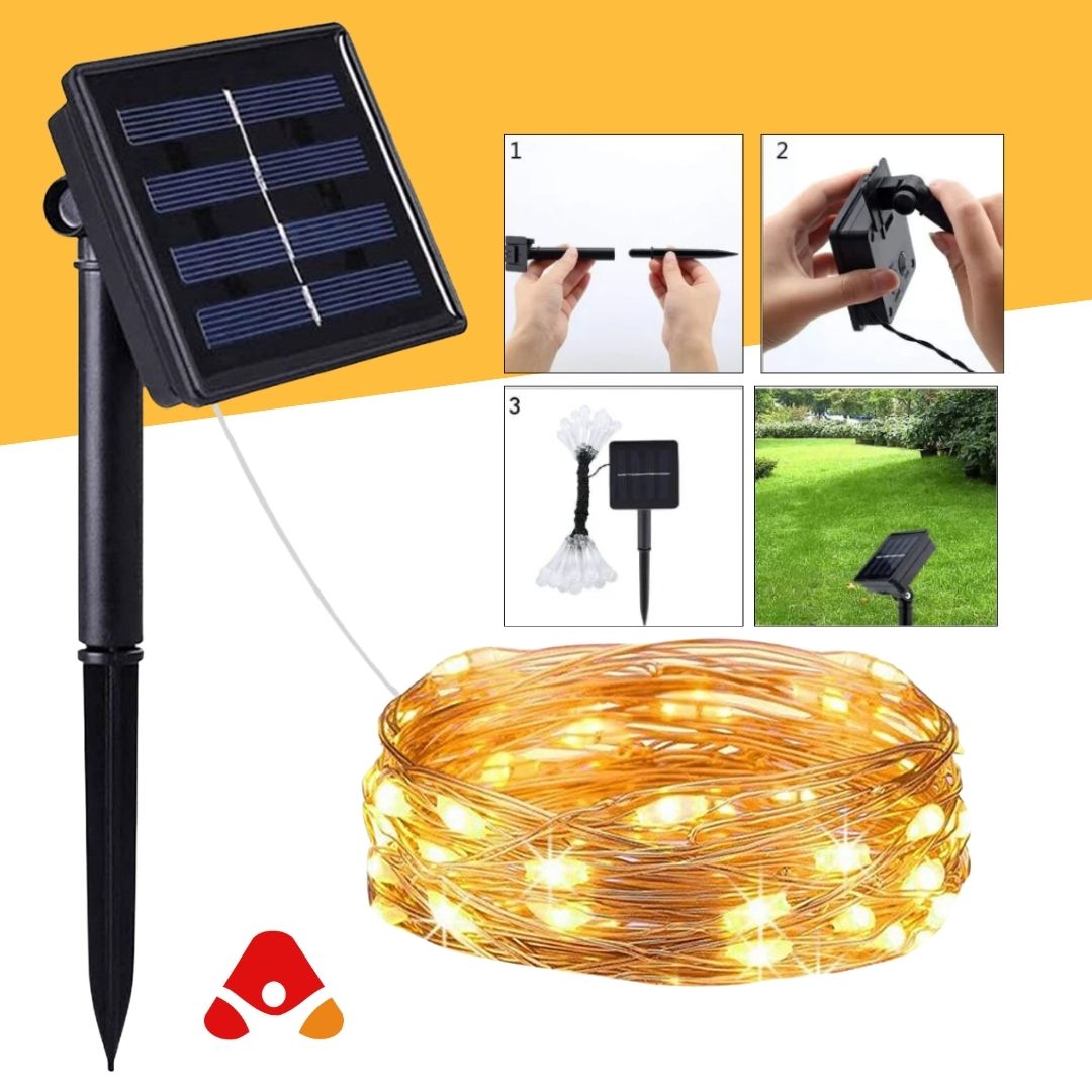 LUCES LED DECORATIVA CON PANEL SOLAR 25 M - DORADO